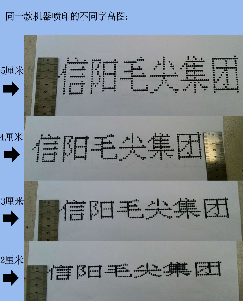 產(chǎn)品特點(diǎn): 1、體積小巧,機(jī)身重2.6Kg,噴頭超輕。 2、字符高度任意調(diào)節(jié)5MM-60MM區(qū)間任意調(diào)節(jié) 3、拼音輸入法,操作方便 4、氣液分離,保證氣泵氣路不被墨水堵塞 5、四輪設(shè)計(jì),可噴平面,弧面,管壁,等任何不規(guī)則面 6、輪距可調(diào),可卡不同粗細(xì)管徑的管材 7、4.3寸彩色液晶屏,人性化操作 特殊功能介紹:1、機(jī)器特有的高度調(diào)節(jié)功能,噴頭設(shè)計(jì)為圓形,所以可以將噴頭調(diào)節(jié)一個(gè)角度,然后在主機(jī)里設(shè)定一個(gè)跟這個(gè)角度相對(duì)應(yīng)的斜率,通過(guò)編碼器給出同步信號(hào),打印出比原字高矮的字符來(lái),值得提出的是改變字符高度的同時(shí)不減少噴印的點(diǎn)數(shù),如圖所示: